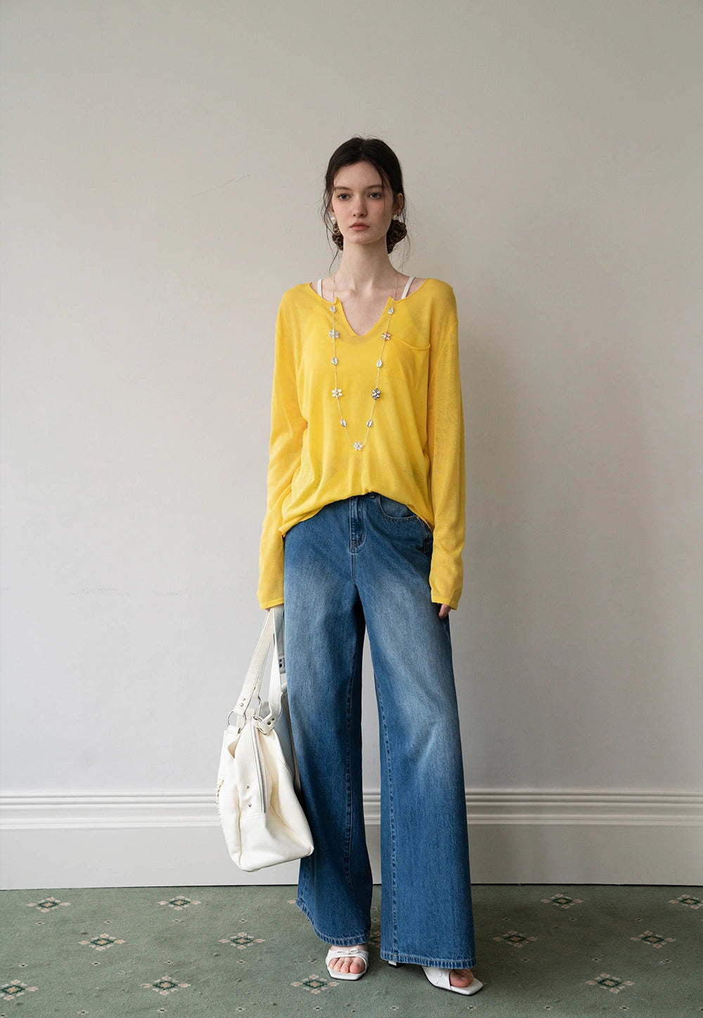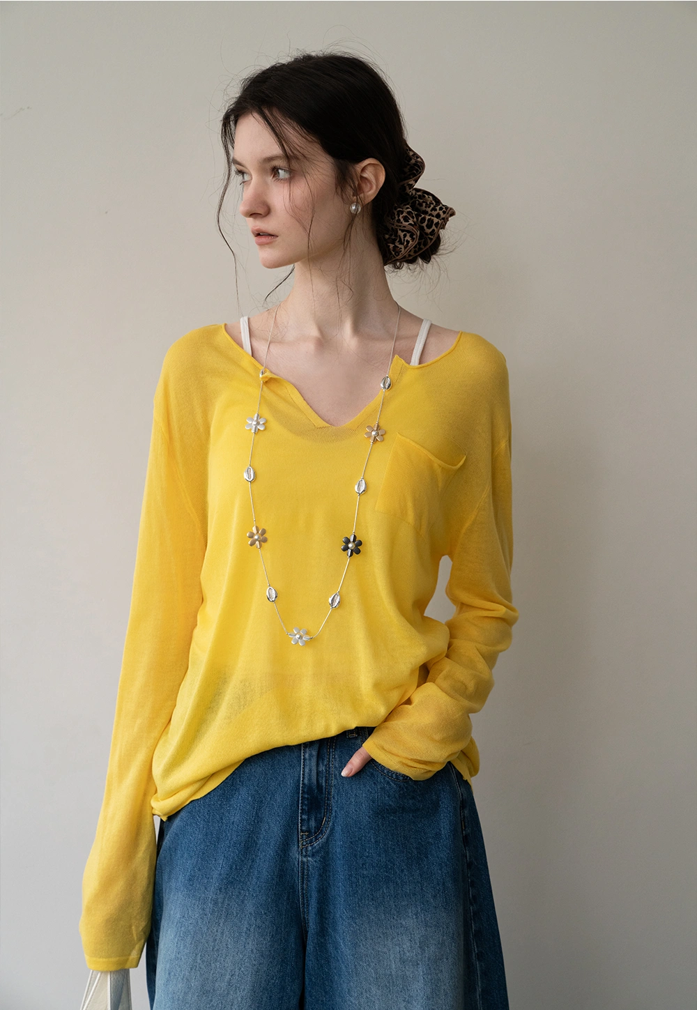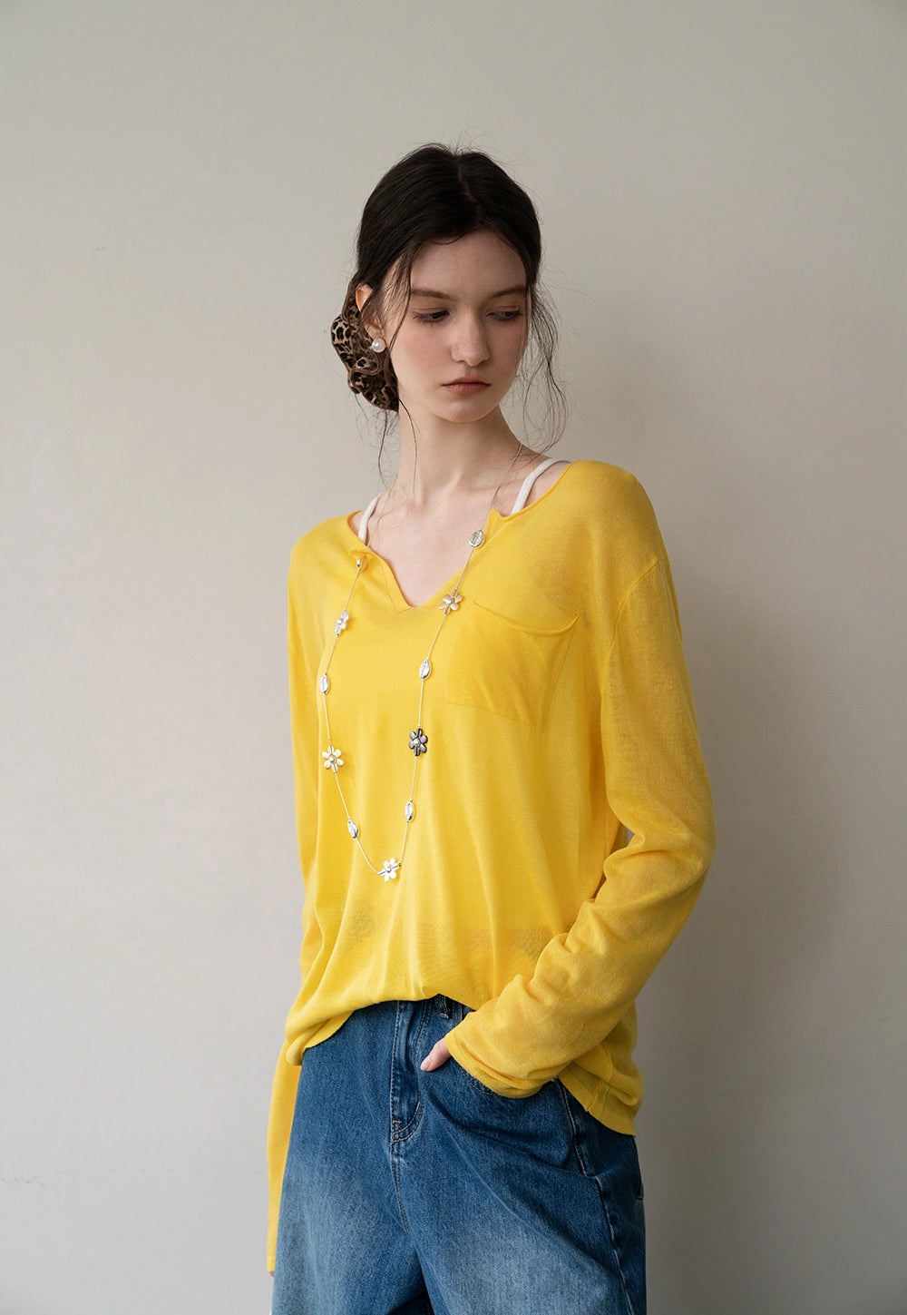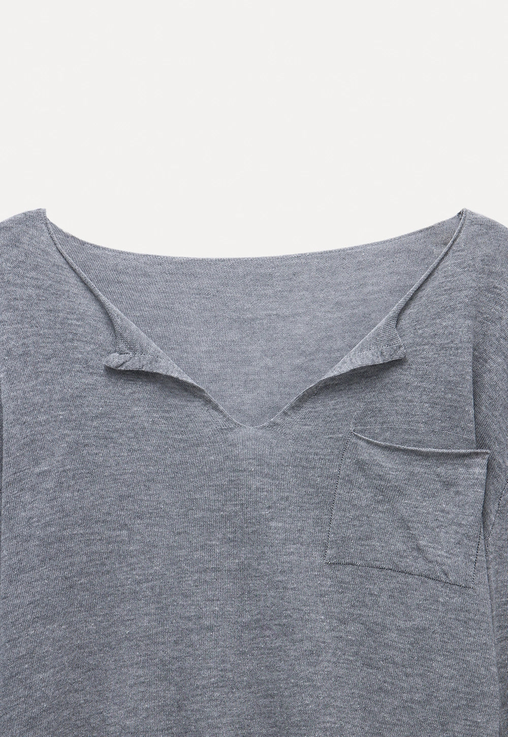 Women's V-Neck Collared Long Sleeve Top with Pocket